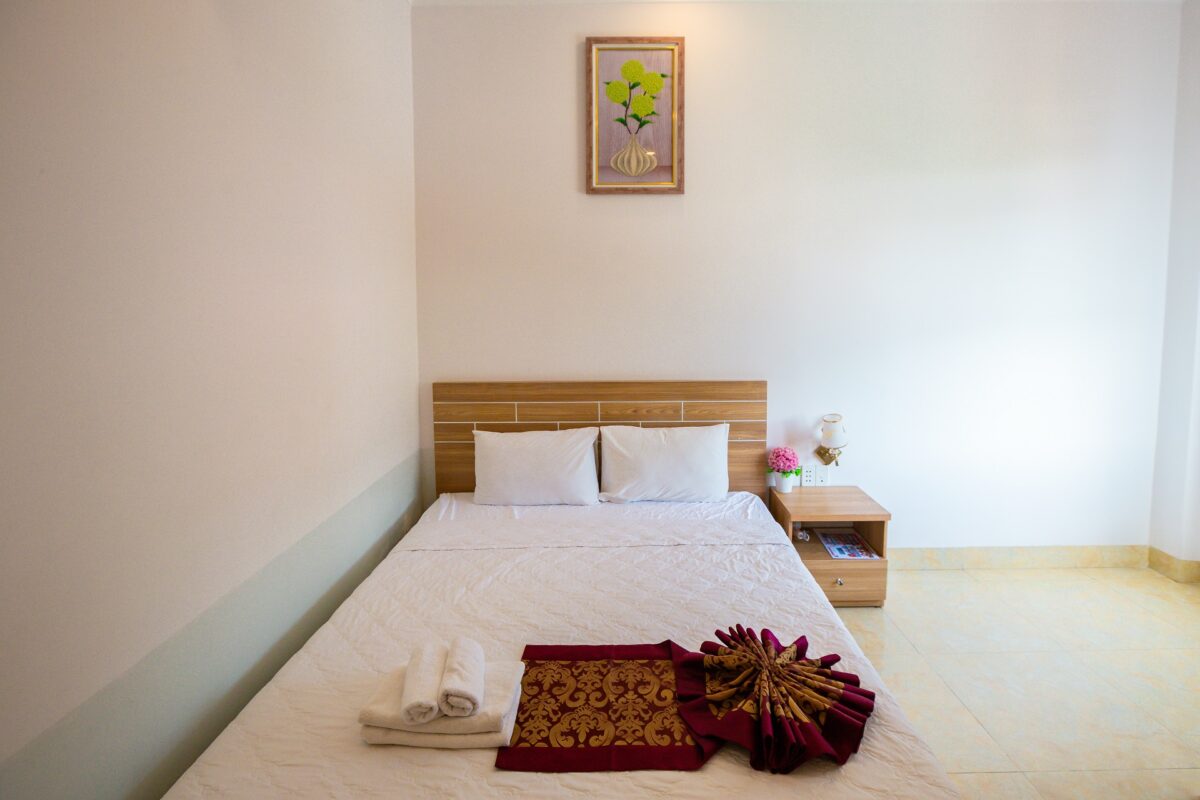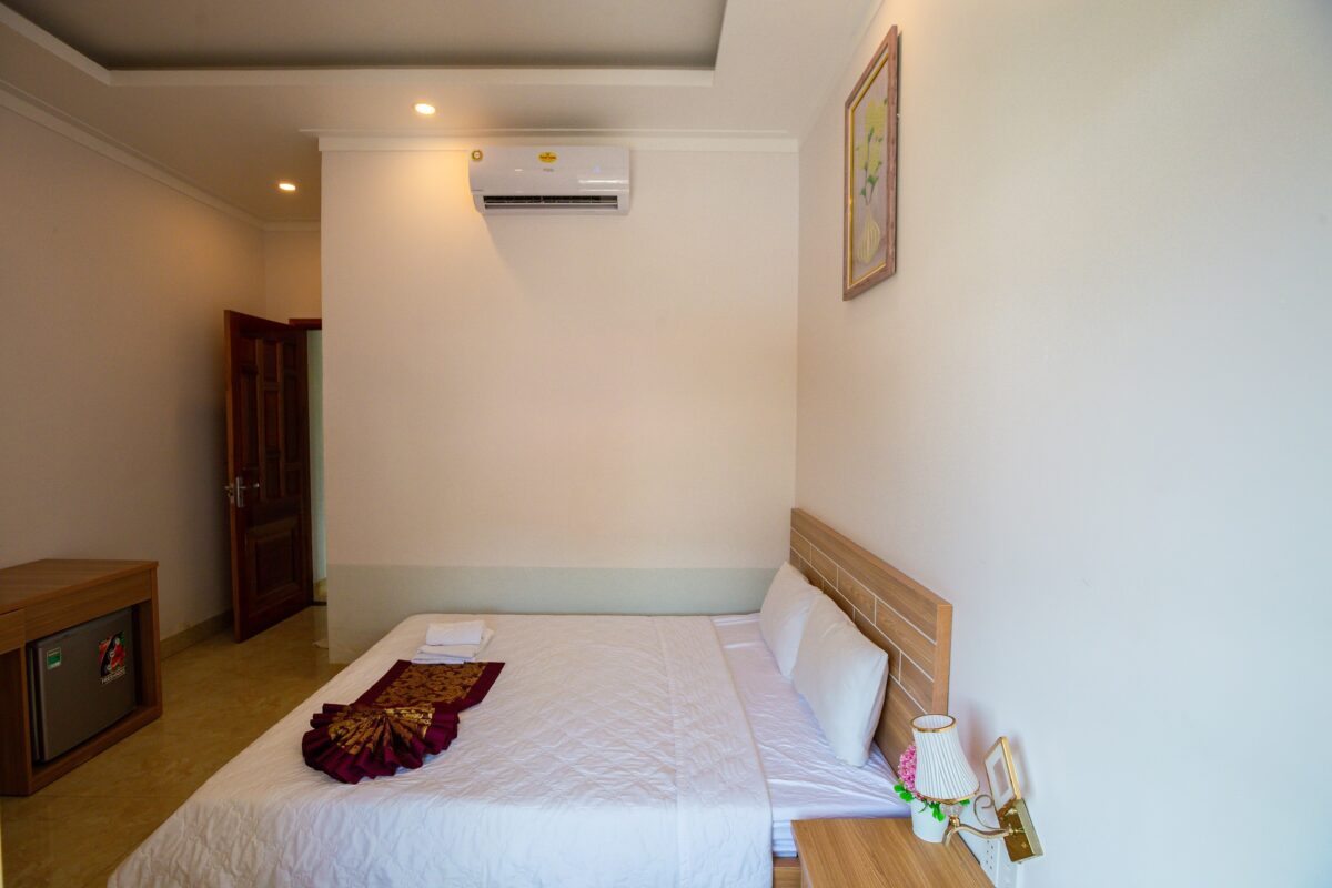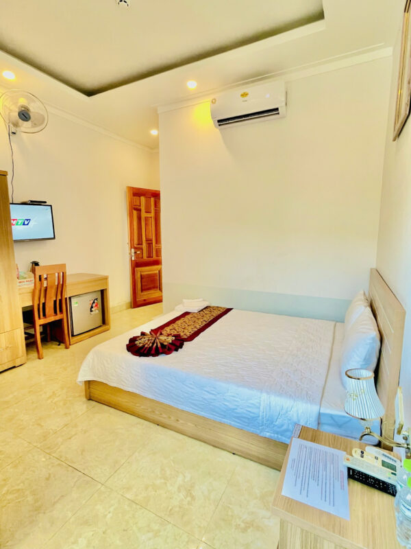 Phòng đẹp, tươi mới nhưng lại ấm cúng, rất phù hợp cho chuyến đi của cặp đôi, vợ chồng. Đặc biệt, phòng có cửa sổ với view hướng thẳng ra công viên, hàng ngày là nơi diễn ra các hoạt động đi lại, vui chơi, sinh hoạt của người dân địa phương và khách du lịch. Lưu trú tại căn phòng này, mỗi sáng thức dậy dang tay đón những ánh nắng đầu tiên và ngắm nhìn cảnh vật bên ngoài, thật sự sẽ là điều thú vị đáng nhớ trong chuyến du lịch nghỉ dưỡng tại vịnh Vĩnh Hy thơ mộng.