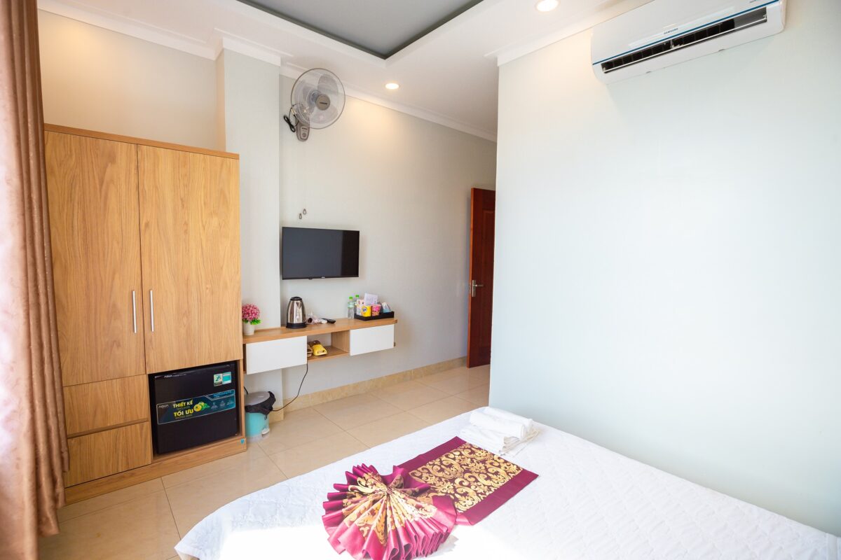 Căn phòng rộng 16m2 trang bị 01 giường 1m6 x2m, bên trong là đầy đủ tiện nghi cần thiết để sẵn sàng đáp ứng một kỳ nghỉ như mong đợi.